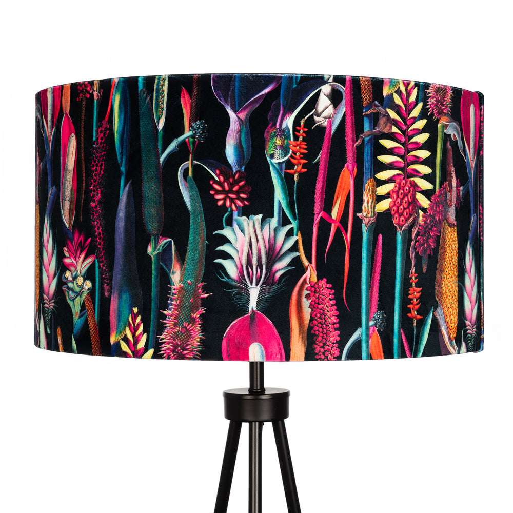 Black Tropical Floral Velvet Lampshade